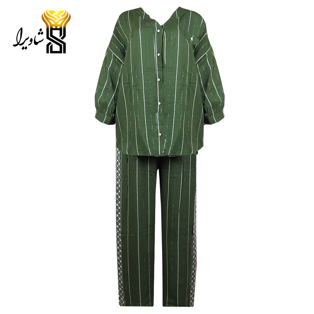 ست شومیز شلوار پشت تور کرسپو راه راه لمه فری سایز